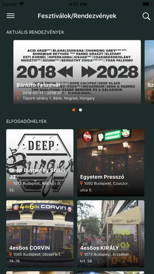 Kövesd nyomon melyek az aktuális HelloPay által készpénzmentesített fesztiválok! Az alkalmazásban megtalálod a különböző fesztiválok programjait és minden egyéb hasznos információt az adott rendezvényről.