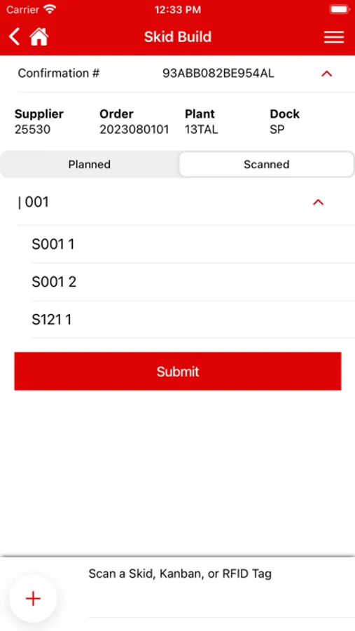 2. Supplier Shipping: Scan each skid on to Toyota truck at supplier