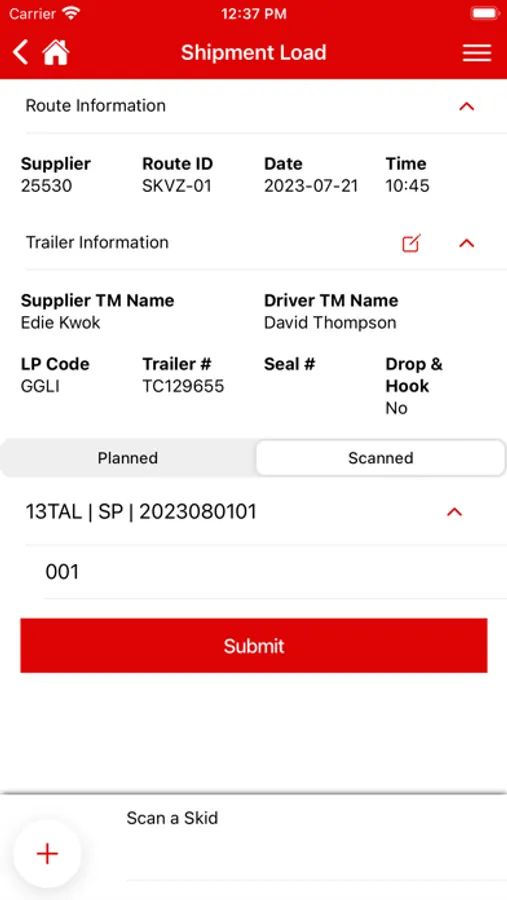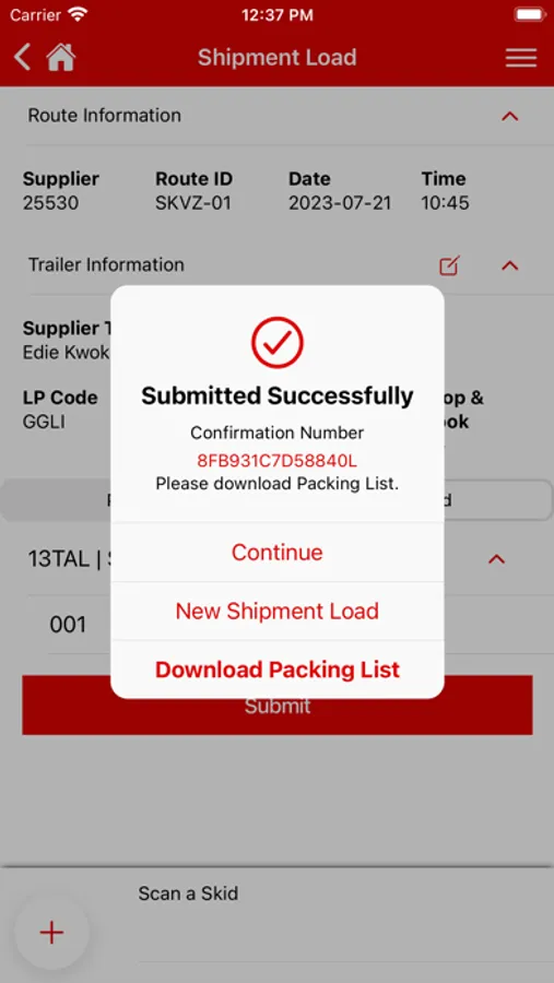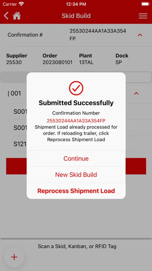 Toyota Shipping Confirmation Mobile application is used to capture and communicate skid and shipment data to Toyota.