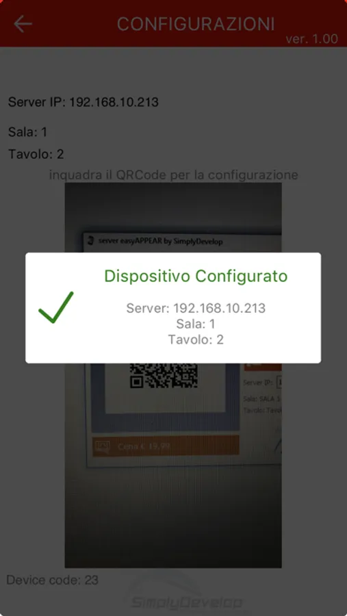 Ogni tablet è associato ad un tavolo attraverso la lettura di un QRCode generato dal software server.