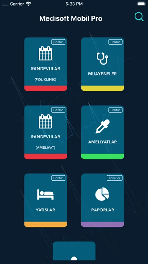 Medisoft Mobil Pro doktorlar yonetici ve saglik personelleri icin sundugu modul ve ekranlar ile pratik bir sekilde listelere ulasilip istenilen verilerin gorulmesini saglar.