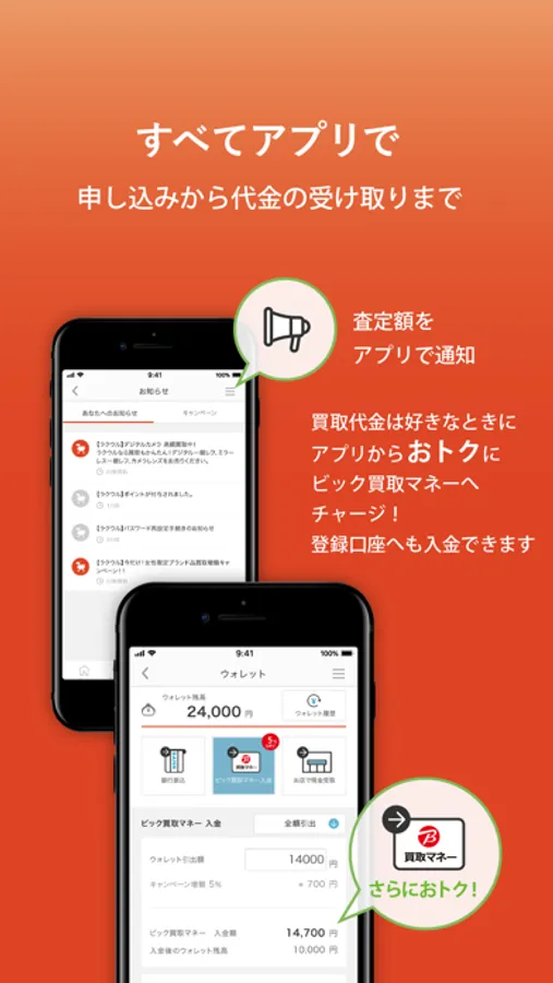 ・買取代金はウォレットに貯まり、あなたの指示でお好きなときに登録口座に入金されます。