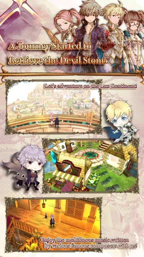 Devil Stone is an RPG which can be played offline without extra charge. The story is about Phicus Sera, the successor to the throne of the Underworld of the tenth generation, being sent to human territories after being deprived of his power by the old Devil King.