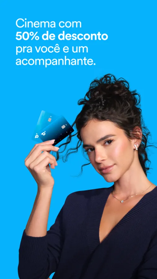 Tenha o cartão que dá 50% de desconto no cinema, limite que aumenta conforme o uso e pagamento por aproximação que pode ser desativado ou ativado em poucos cliques.