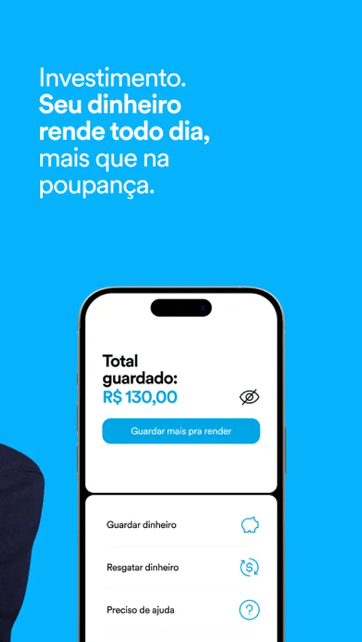 Invista a partir de R$ 5 e faça seu dinheiro render todos os dias. Se precisar do dinheiro, você poderá resgatar quando quiser.