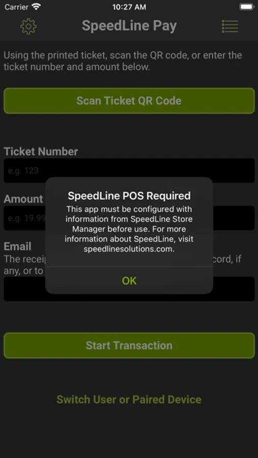 • Scans a QR code for fast auto-fill of payment amount and ticket number.