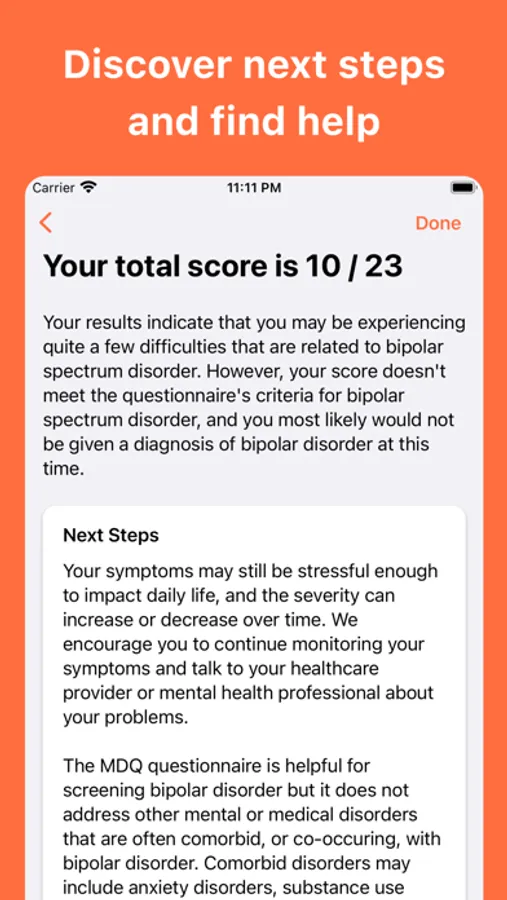Disclaimer: The MDQ is NOT a diagnostic test. A diagnosis can only be provided by a qualified healthcare professional. Please consult a physician or mental health professional if you are concerned about bipolar disorder.