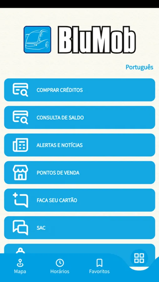 - Localização em mapa dos pontos de parada e de venda de créditos nas proximidades
