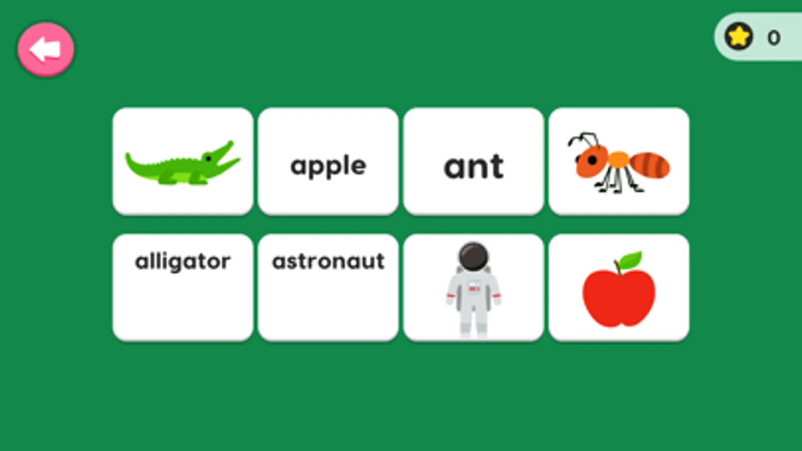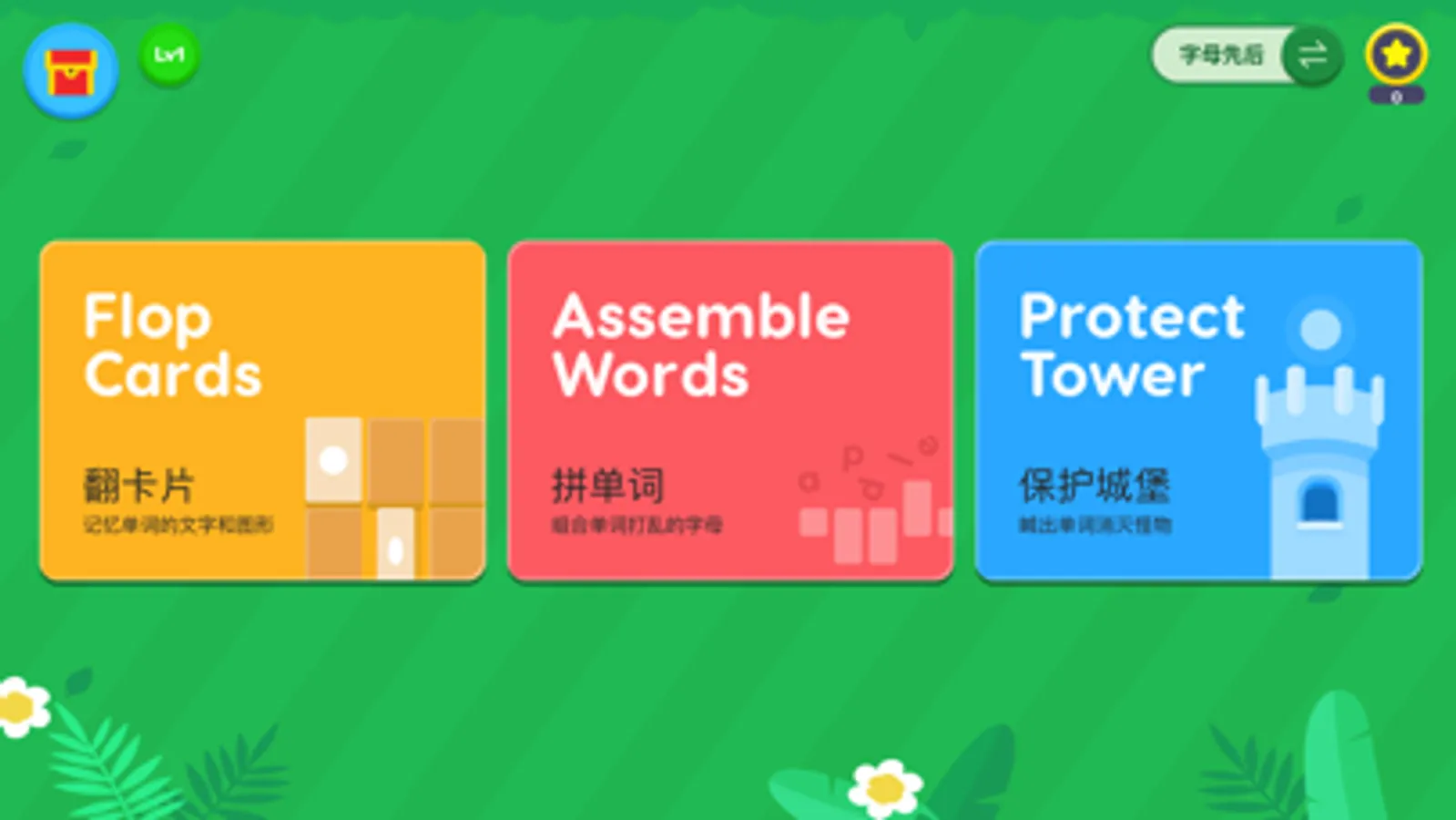 此APP为L1单词强化练习,为0基础的孩子选取了104个单词供游戏中学习记忆。