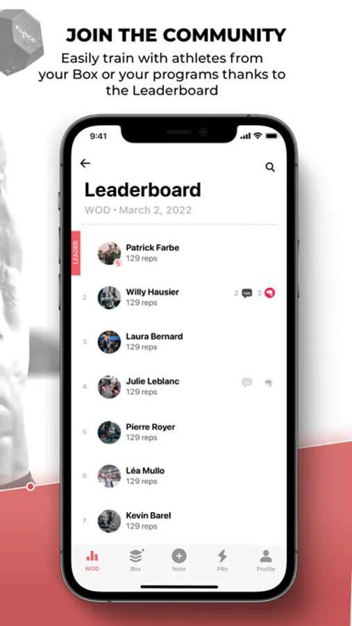 - If your Box is on Strivee, the WOD is updated every day. Challenge your friends with the Leaderboard. Comment and give them some fist bumps to support them.
