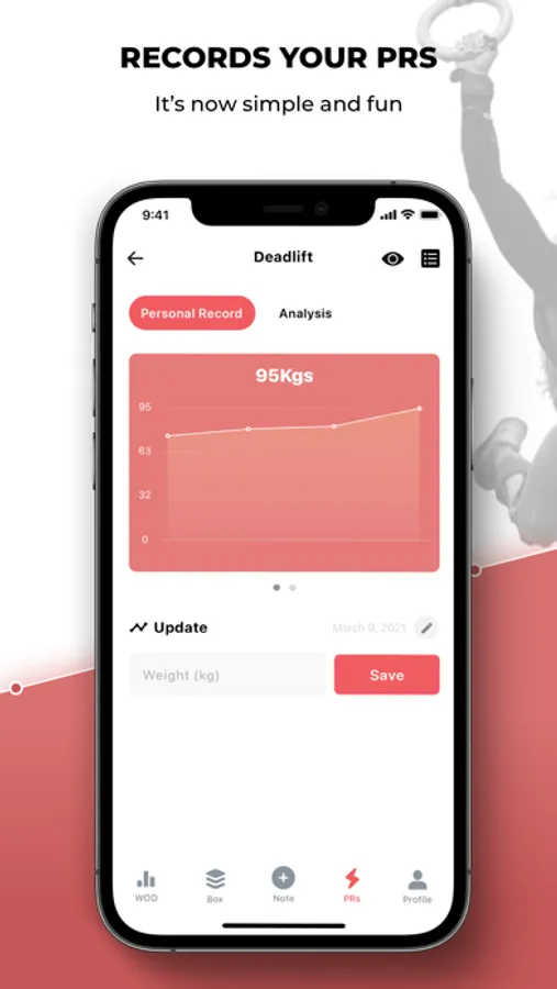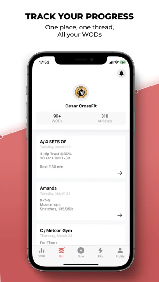 - Better understand your progress, by keeping track of your WODS, PRs and Benchmarks with stunning graphs.
