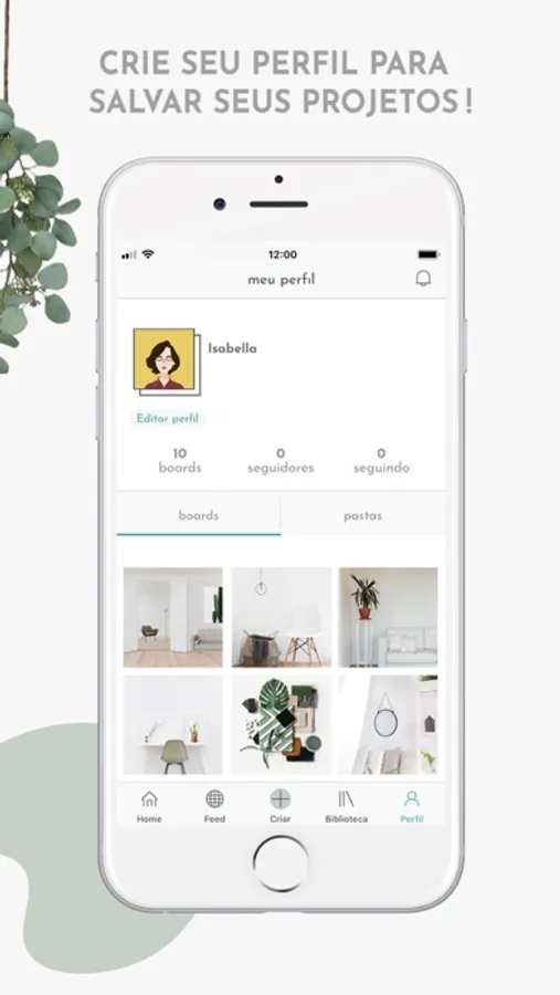 O aplicativo apresenta ferramentas de criação para montagem de moodboards e simulações em ambientes.