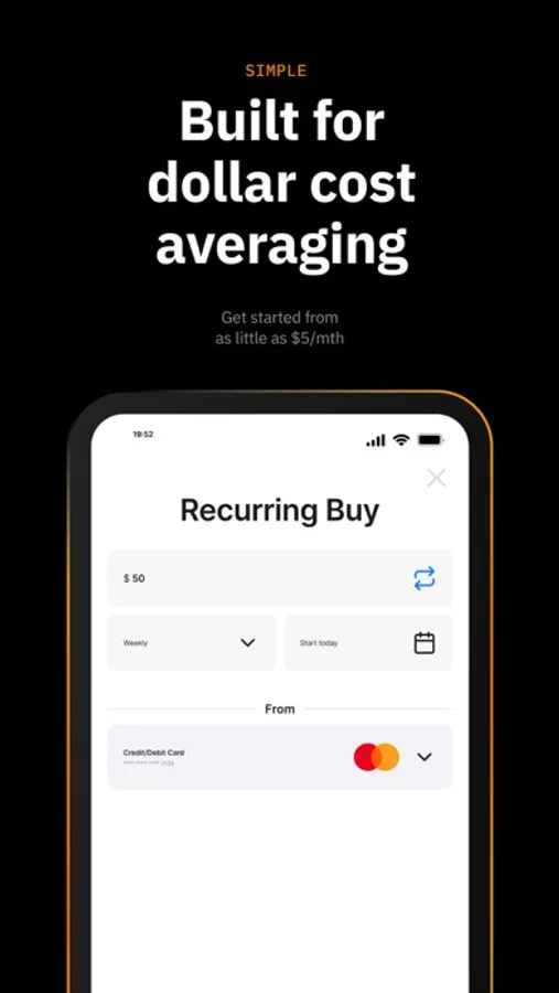 Via recurring purchases, Amber provides you with the tools to configure and easily adjust a Dollar Cost Average plan right from the palm of your hand.