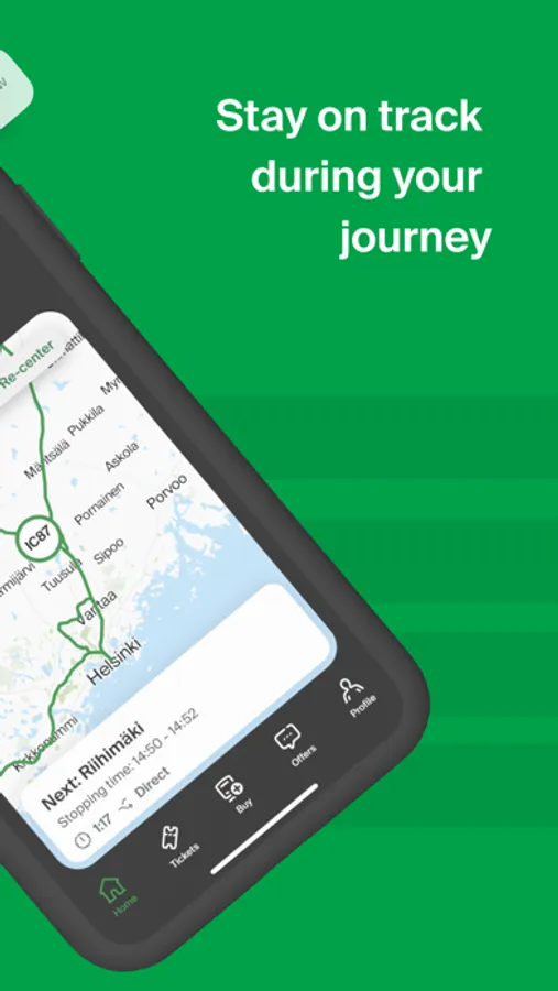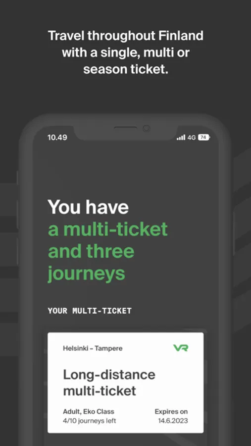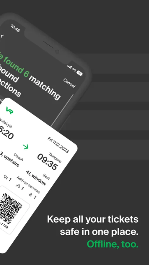 We will send your ticket to both the app and your email. You can pay for your journey using online banking, a payment card, MobilePay, Siirto or Epassi. If you have bought your tickets as a logged-in customer, you can always find the tickets you have bought in the app. This means that you can buy your ticket on your computer at home and still travel with that same ticket on your phone.