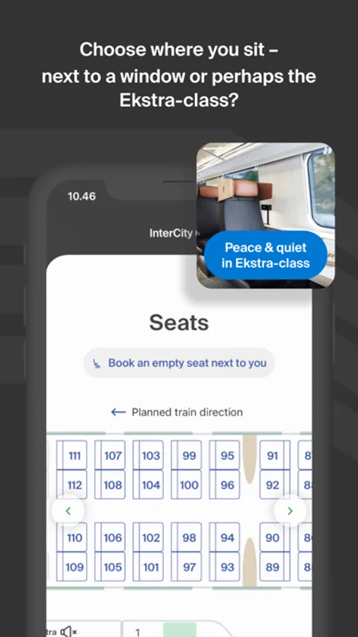 You can conveniently reserve a seat using the coach map when buying a ticket. You can also buy the seat next to you and enjoy the extra space. If you want to add a touch of luxury to your journey, you can travel in Ekstra Class or the restaurant car’s upstairs section, which offers the best view. You can also buy a ticket for your travel companion, bicycle, or pet.
