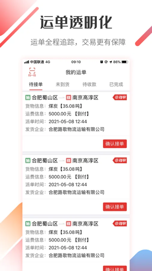 结算保专享:运费有保障,约定账期必到账,账期内急用钱可提前收款;