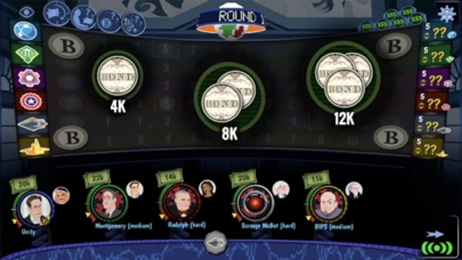 Module 2: Bonds — Bond present a new, safe investment option for players. Purchasing bonds can provide a steady stream of interest payments every round. However, it comes at a price. The original money used to purchase bonds cannot be recovered until the end of the game. Be careful not to overspend or you might lose out on valuable stockpiles.
