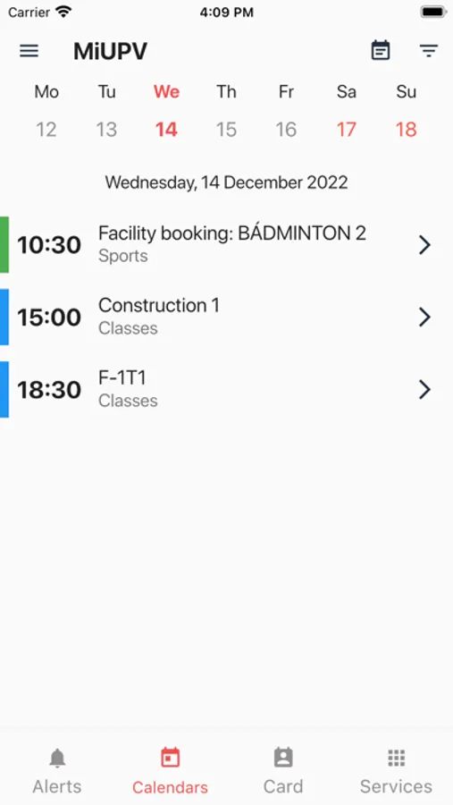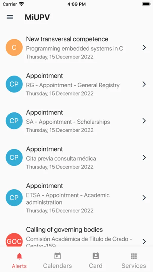 Through this application, the UPV offers its students and staff access to a wide variety of personalized services, including: