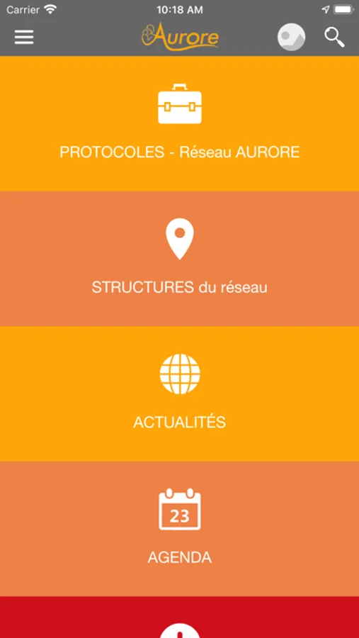 Le Réseau AURORE (Association des Utilisateurs du Réseau Obstétrico-pédiatrique Régional) regroupe un ensemble d'établissements publics et privés en AUVERGNE RHONE-ALPES, ainsi que des professionnels de santé libéraux et de PMI ayant pour objectifs communs de fournir des soins de qualité aux femmes enceintes et aux nouveaux nés, et des associations de parents ou de professionnels. Une partie de l'application est réservée aux professionnels de santé
