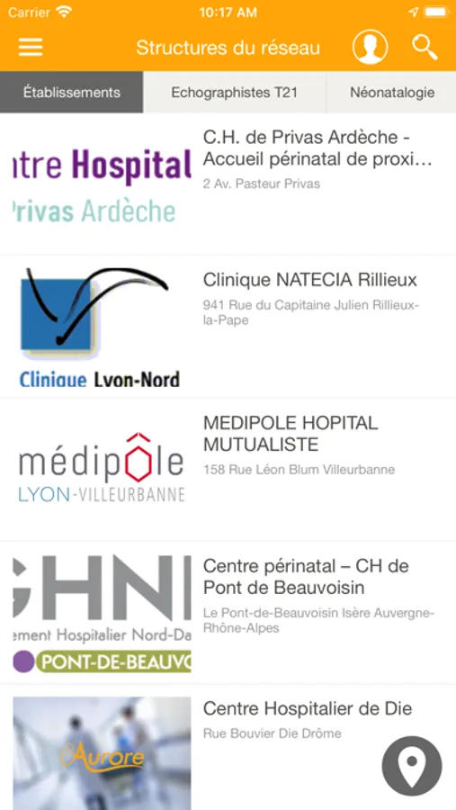 - Liste et géolocalisation des structures du réseau + échographistes T21