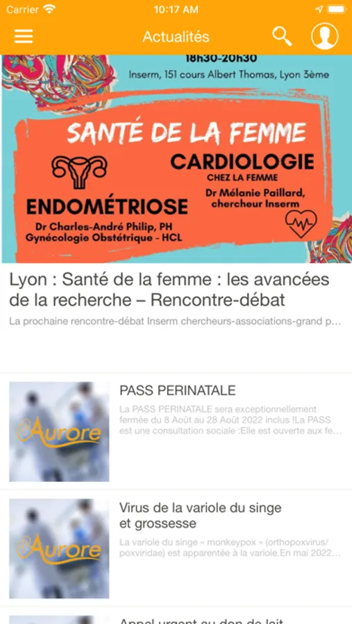 Dans la section dédiée aux professionnels de la santé, elle vous permet de consulter tous les protocoles élaborés par le réseau AURORE (plus de 100 protocoles classés dans 10 thématiques). Vous y trouverez également :