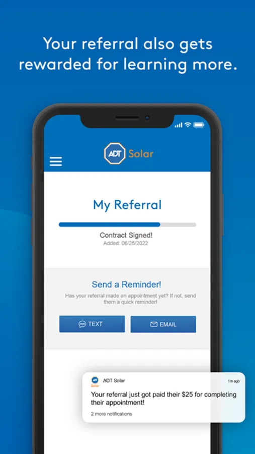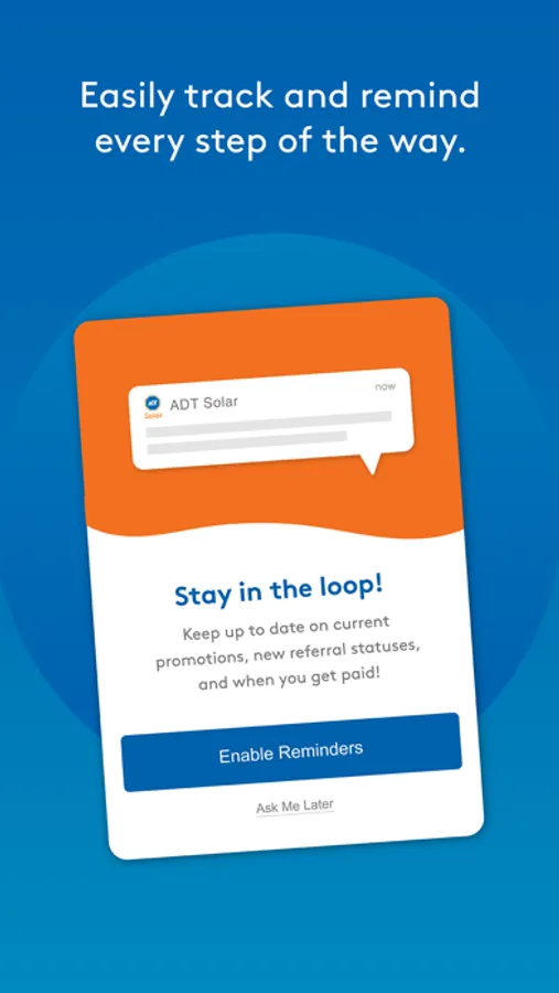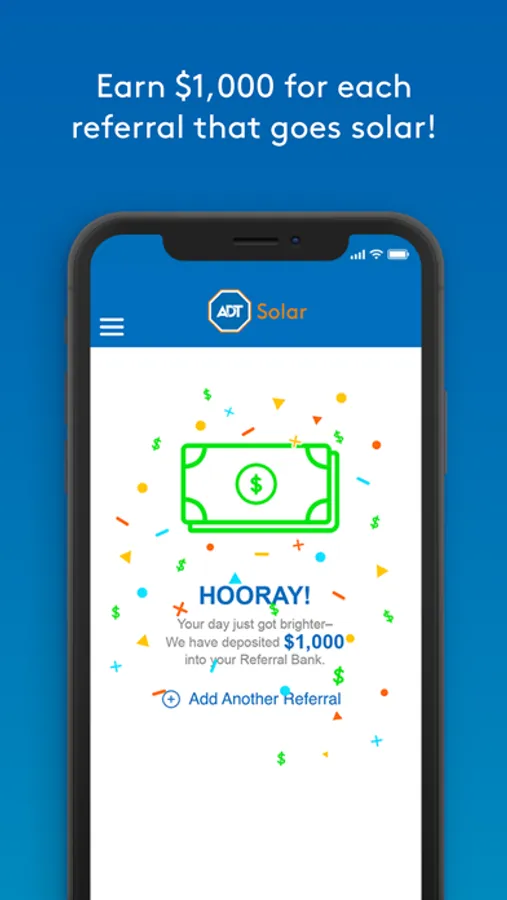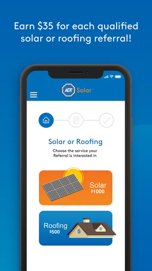 ADT Solar is a free app available for anyone to download and is used for those that want to earn extra cash by referring your friends to go solar or replace their roof! We pay $35 for EACH qualified referral and $25 to your friend for just meeting with us. If your referral goes solar you will receive an additional $1,000 and if they get a new roof you receive $500!