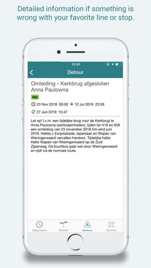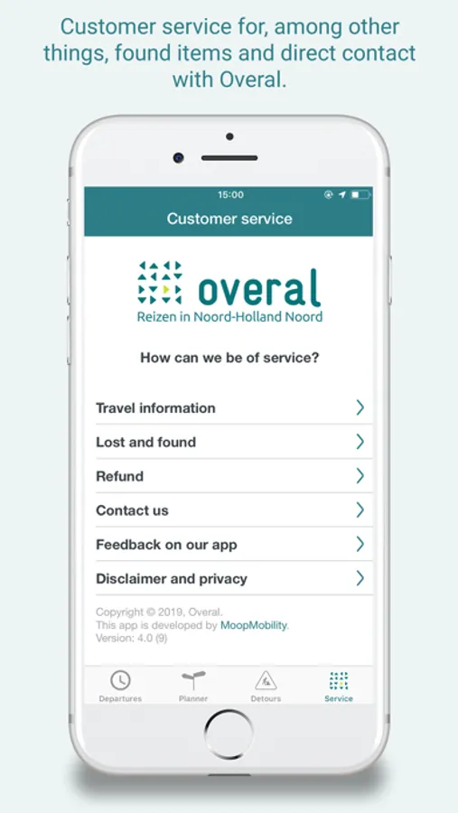 In this app, you can plan your journey from A to B, reserve a ride with Overalflex if available, see current travel information and possible diversions, and contact Customer Service.