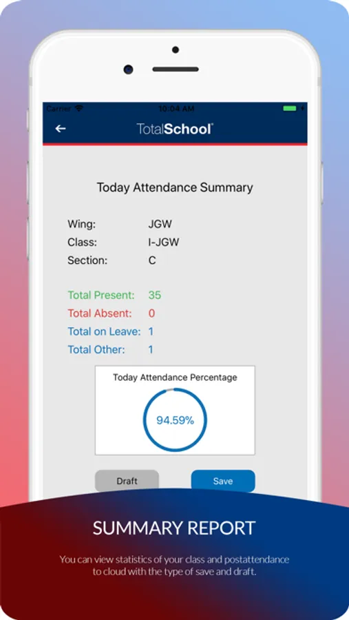 TotalSchool is an ultimate school management software solution linked with school ERP. It is designed to mark attendance and maintain complete class history. Its user-friendly dashboard could be easily accessed by logging in with your credentials. The teachers are allowed to save attendance in the draft so, it could be easily edited anytime in the future with updated remarks. The user is allowed to configure school application and manage the attendance of their class by maintaining detailed history. It also let the teachers and administrator, filter report on monthly basis.