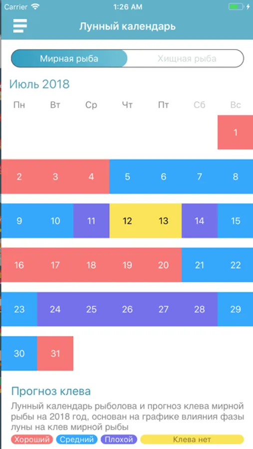 Данное мобильное приложение ориентировано на организацию любительского рыболовства на рыбохозяйственных водоемах и способствование формированию правовой грамотности и культуры граждан. В основе приложения лежит карта области с необходимой инфраструктурной, справочной, контактной и прочей информацией для рыболовства. Пользователь может распланировать свой маршрут и сохранить его в личном кабинете, выбрать водоем, период нахождения на рыбалке, вид вылавливаемой рыбы, посмотреть погоду, оставить отзыв, подобрать благоприятную фазу для клева и многое другое.