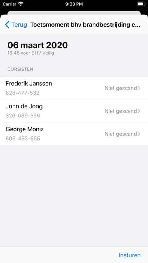 Met NIBHV scanner kan de bhv-instructeur direct de resultaten van kennistoetsen vastleggen en terugkoppelen.