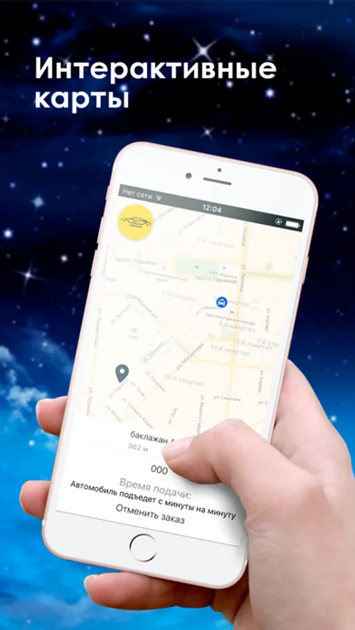 Заказ автоматически попадает к ближайшему свободному водителю. Время подачи автомобиля в течение 5 минут.