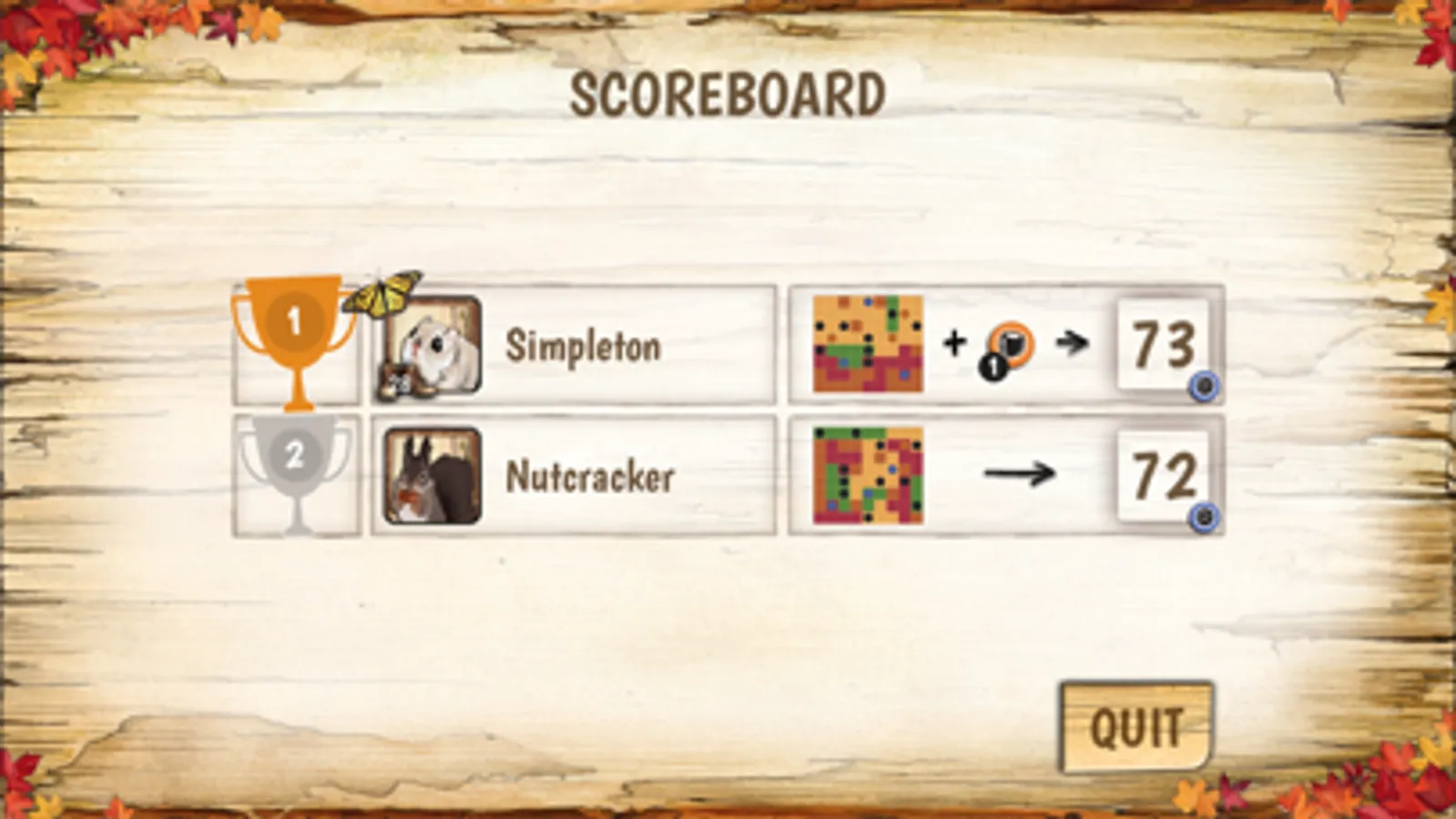 The heart of Indian Summer are puzzle tiles with holes that are placed on individual forest boards to cover up treasures. When players get their hands on these, they gain more options and an edge over their opponents. All that counts in the end is to be the first to cover your forest floor completely with leaves.