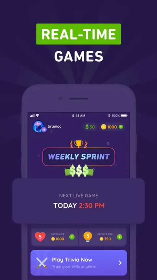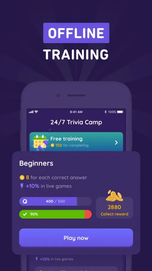 Enjoy real-time trivia with players from all over the world and train your general knowledge and skills offline in the special trivia training mode.
