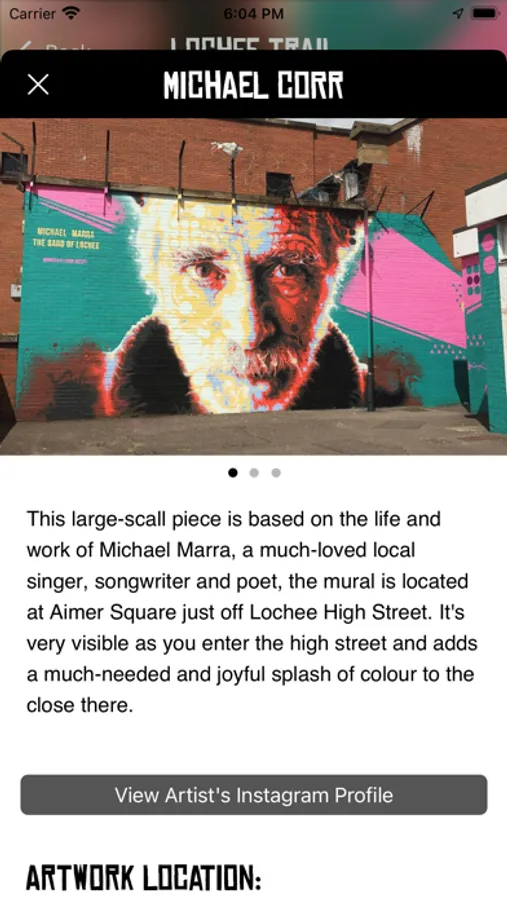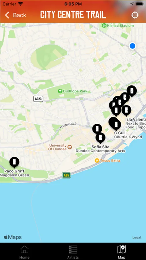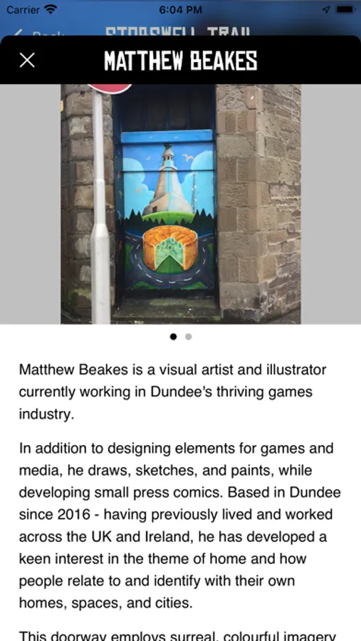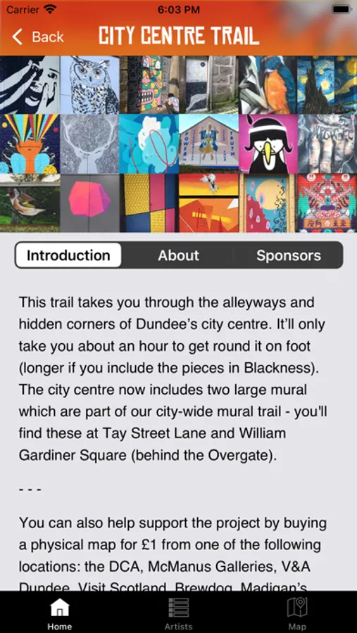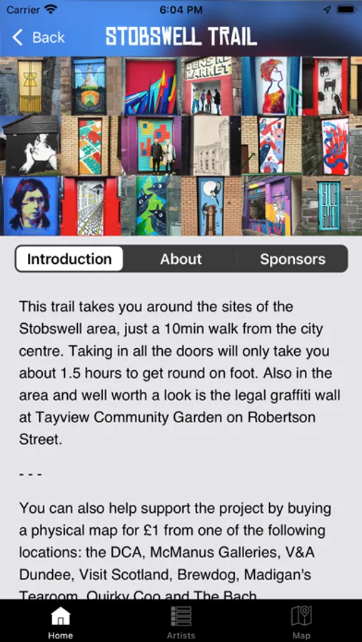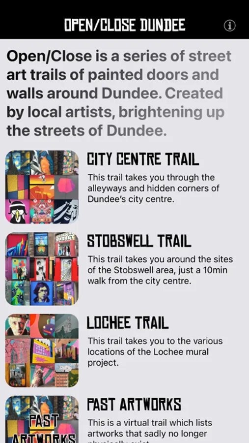 The app provides a way to find out more about the artists, artworks and most importantly a guide map to the locations of the Open/Close Dundee street art trails.