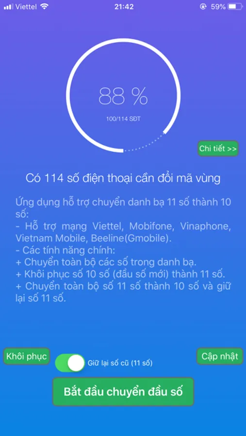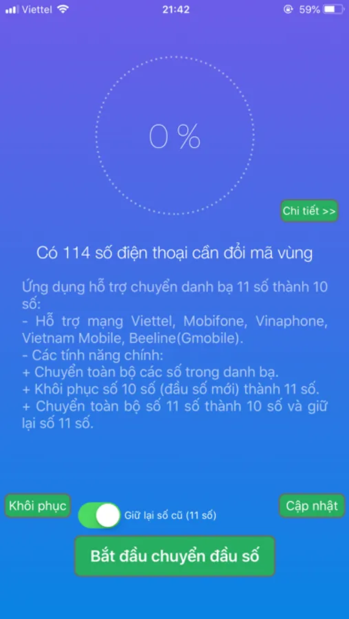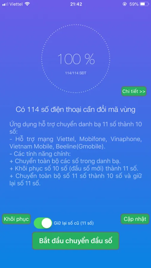 Ứng dụng chuyển danh bạ 11 số sang 10 số, hỗ trợ sim 11 số Viettel, Mobifone, Vinaphone, Vietnamobile, Beeline.