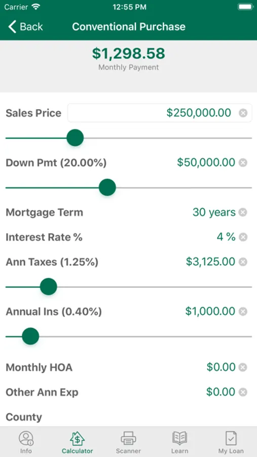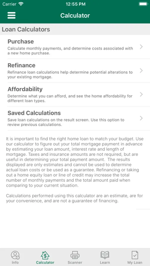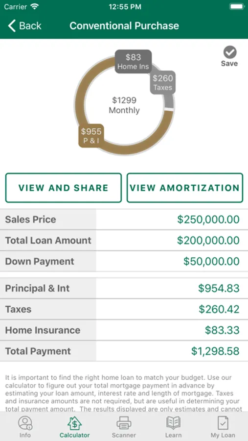The calculations provided by our app are useful in giving you an idea of what homeownership might mean for you. However, please be sure to contact your Bank of Washington loan officer for a customized solution tailored to your specific financial situation, needs, and goals. Your loan officer can also assist you with any questions you have about your loan and the loan approval process.