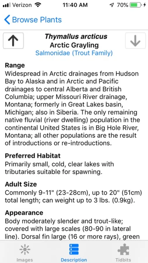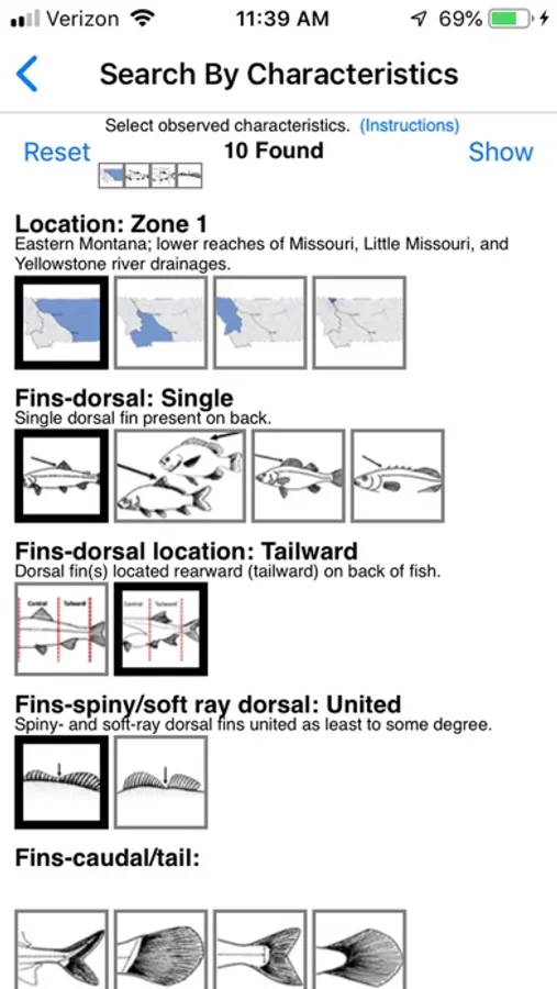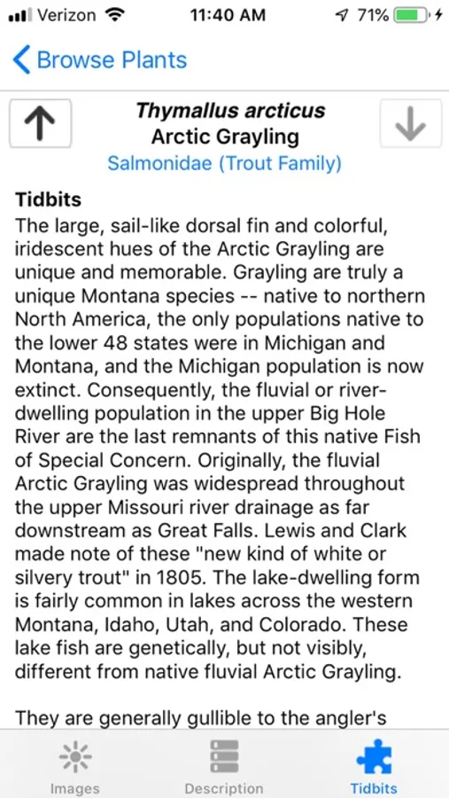 FISHES OF MONTANA is a collaborative effort between Montana State University's Department of Ecology, Montana Fish Wildlife & Parks, and MountainWorks Software. FISHES OF MONTANA provides an easy-to-use visual reference and interactive keys to the 90 species known to be found in the waters of Montana, and 10 Aquatic Invasive Species that we wish to keep out of Montana. A user can identify a fish visually by browsing through images of fish, search by name and family, or by using identifying characteristics such as fin structure, location of mouth, or geographical location. Each species is profiled to include images of the fish, range maps for both Montana and the U.S., preferred habitat, adult size, appearance, life history, similar species, and more!