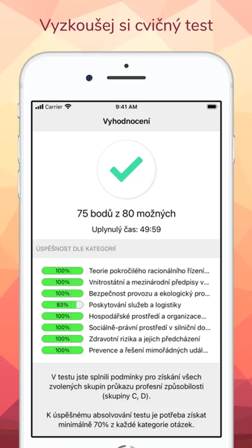 Test je samozřejmě sestaven podle stejných kritérií, jako reálný test který Vás čeká u skutečné zkoušky na profesák.