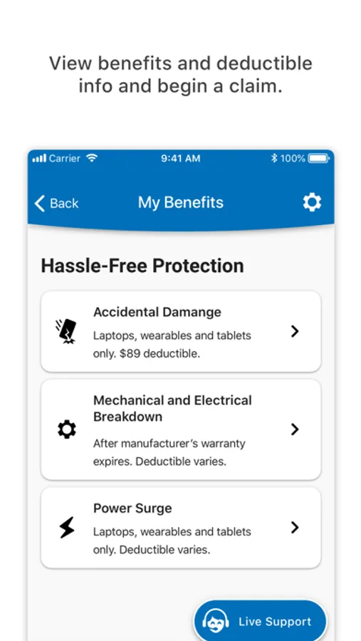 • View your benefits and deductible information and start a claim if needed.