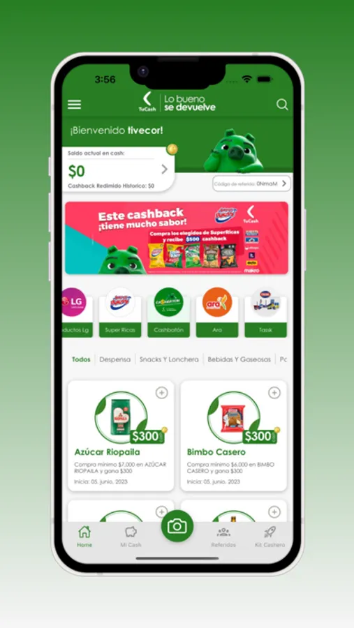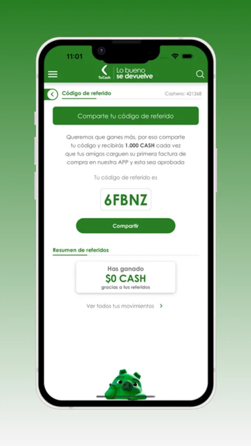 ¡Refiere y gana! Refiere a tus amigos y gana $1.000 por cada uno que se registre y realice su primer cashback aprobado.