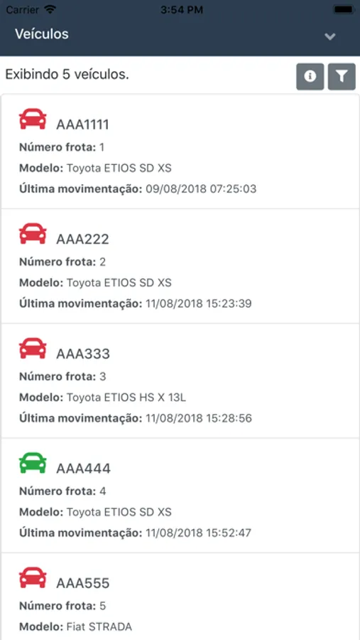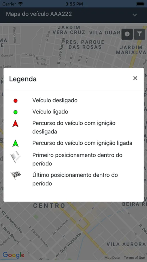 - Visualizar veículos ligados e desligados;