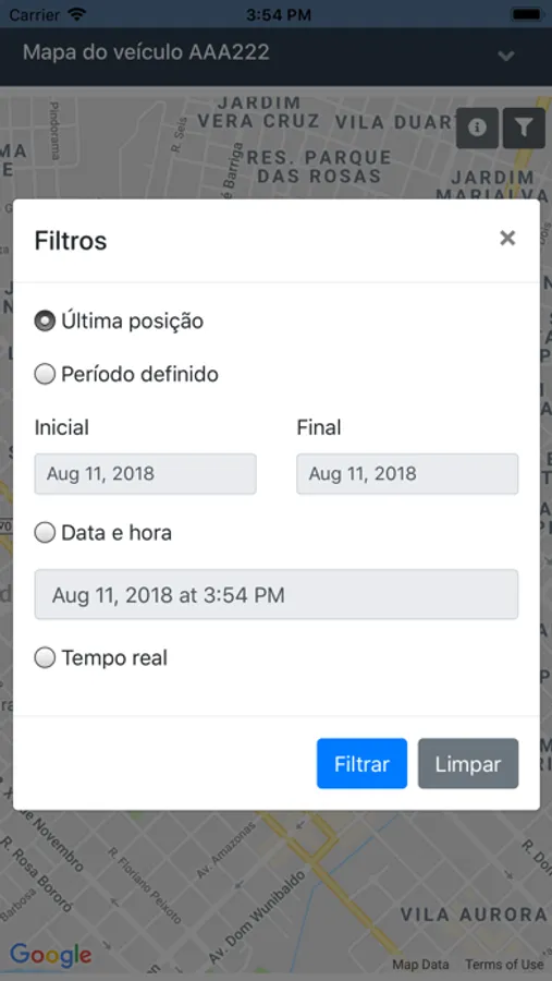 - Visualizar a localização atual;