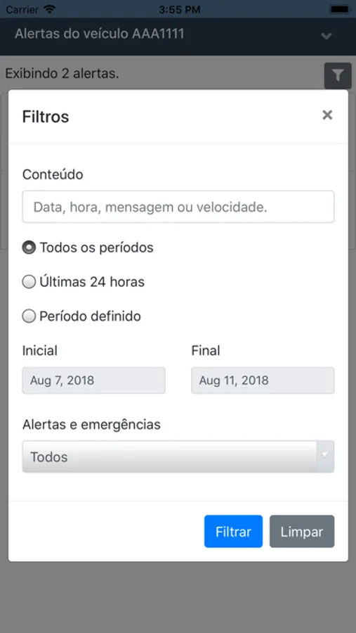 - Visualizar histórico de localização e também o histórico de alertas.