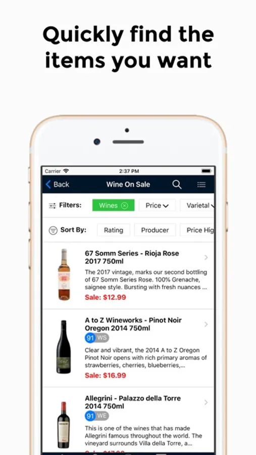 A leading wine destination since 1941, 67 Wine & Spirits is pleased to bring its outstanding selection and experienced service to our mobile app. We are consistently rated one of the best wine shops in New York, and you can be assured that you will have access to the same outstanding selection and quality service that has made us a leading wine merchant.