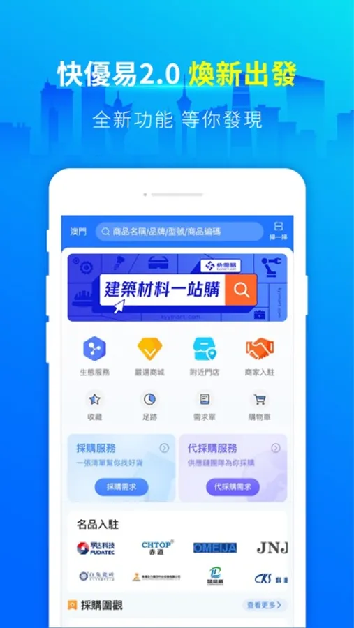 快優易圍繞建築材料工程採購及流通,整合全球建築行業優質資源,利用先進的互聯網平臺技術,為客戶提供快捷、優質、易用的採購體驗。