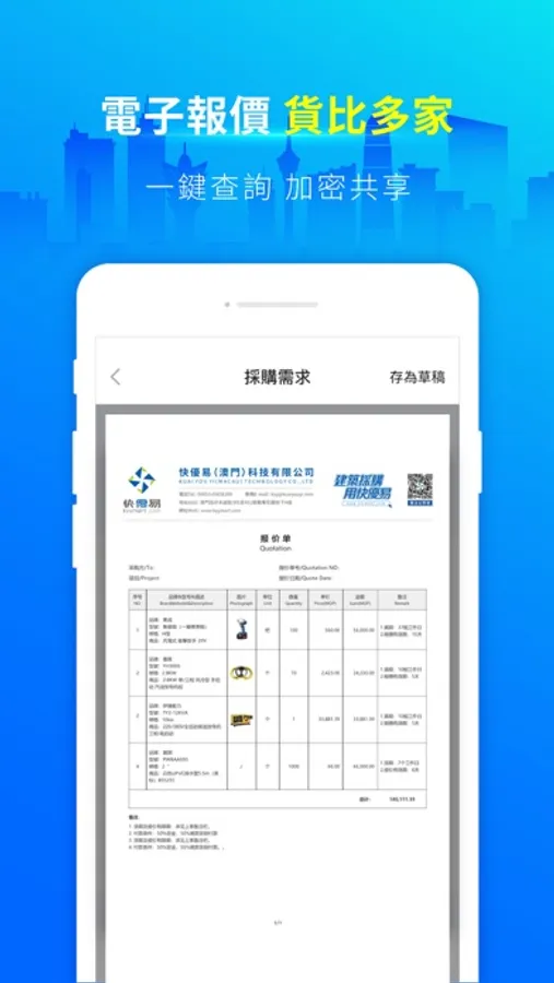 快優易是一款由珠海新海通電子商務有限公司研發的,為建築行業提供一站式B2B跨境服務的商城app。