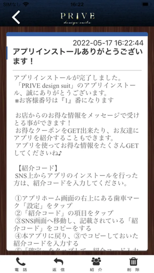 PRIVEのアプリをSNSを通じてお友達に紹介する事ができます。