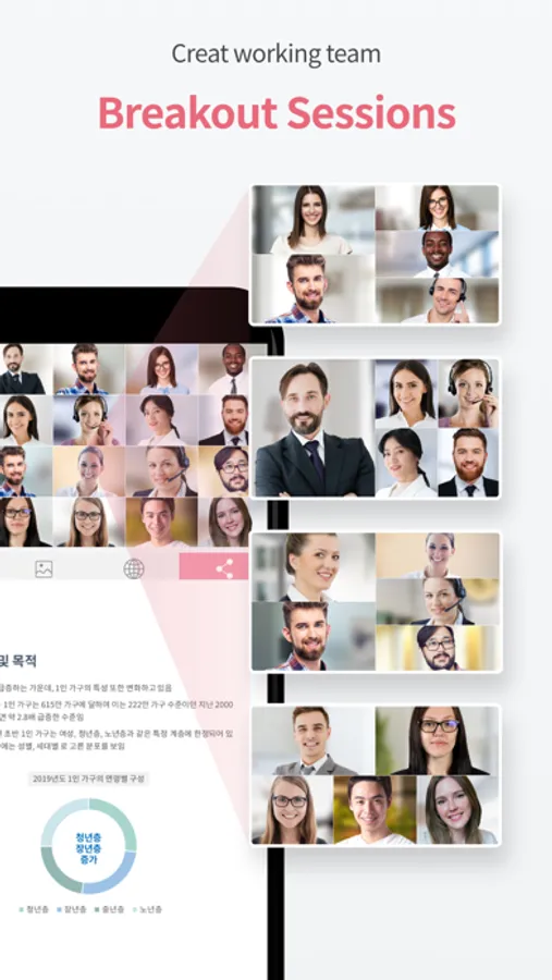 It is premium meeting service for business including co-workers, freelancers and other professionals, providing more features like scheduling meeting, poll, annotation and etc.. BreakOut runs on both iOS and PC. Now you can enjoy meeting anywhere, any time regardless of office, on the bus, at home. This is paid service.