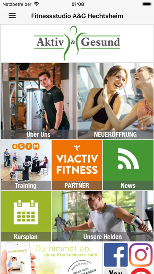 Mit der Aktiv & Gesund-App hast Du Deine Aktiv & Gesund Fitnessstudios in Ingelheim, Budenheim und Mainz immer in der Hosentasche. Informationen, wie z.B. das aktuelle Kursprogramm, die nächsten Events, Clubfotos und Angebote sind immer dabei und Du erhältst alle News per Push Nachricht.