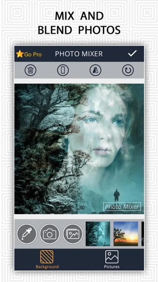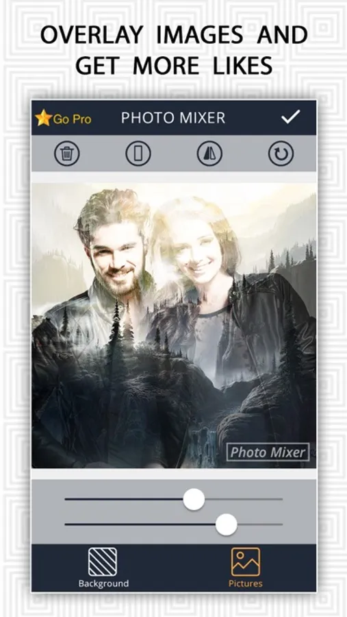 Create amazing mixed pictures by overlaying two or more pictures on each other.